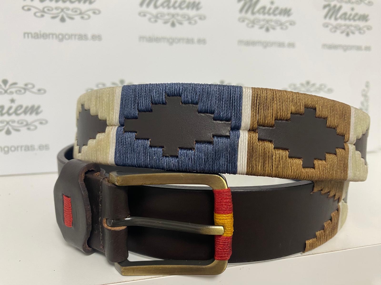 Cinturón Argentino Piel Vacuno Azul-Beige